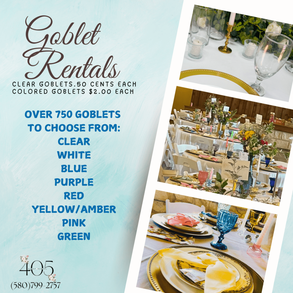 Our goblets add elegance to any event. We have spent countless hours combing estate sales and antique markets just for you on your special day. Our large variety of vintage goblets are not only beautiful, but they create conversation between guests at each table to ensure new friends are made and the evening looks perfect, current inventory is well over 1,000 and growing. Decorate your entire reception with our goblets, brighten the wedding head tables with sophistication, or add style and flare to your cocktail hour. They are fun and easily take your event to the next level.